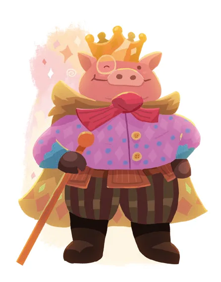 Le Baron Ereib est un cochon tacheté et plutôt maigrelet, ce qui tranche avec ses congénères. Chef de la famille Rince-Cochon et dirigeant de Tourne-Bouchon, son intelligence et sa réputation de « cruauté » sont sans égal, mais cette férocité est en grande partie une façade pour maintenir l'ordre parmi ses cousins crétins.